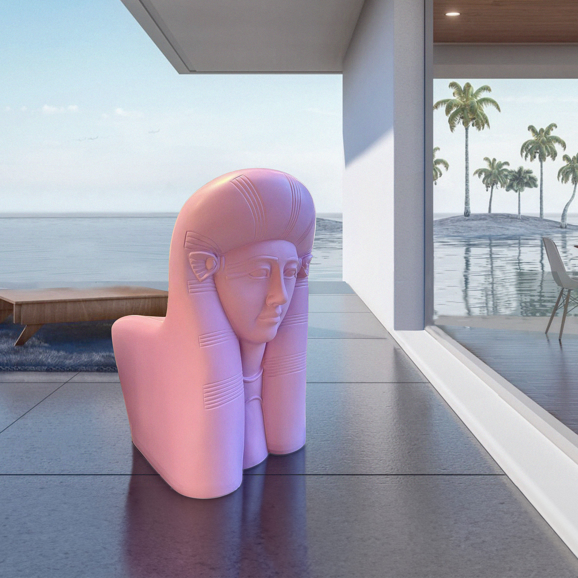 Inspired by Hathor, the goddess of beauty, love, and music, the Hathor Sculpture Chair combines ancient Egyptian artistry with contemporary design. Its bold, sculptural form and intricate details make it a statement piece that adds timeless elegance to any space.
