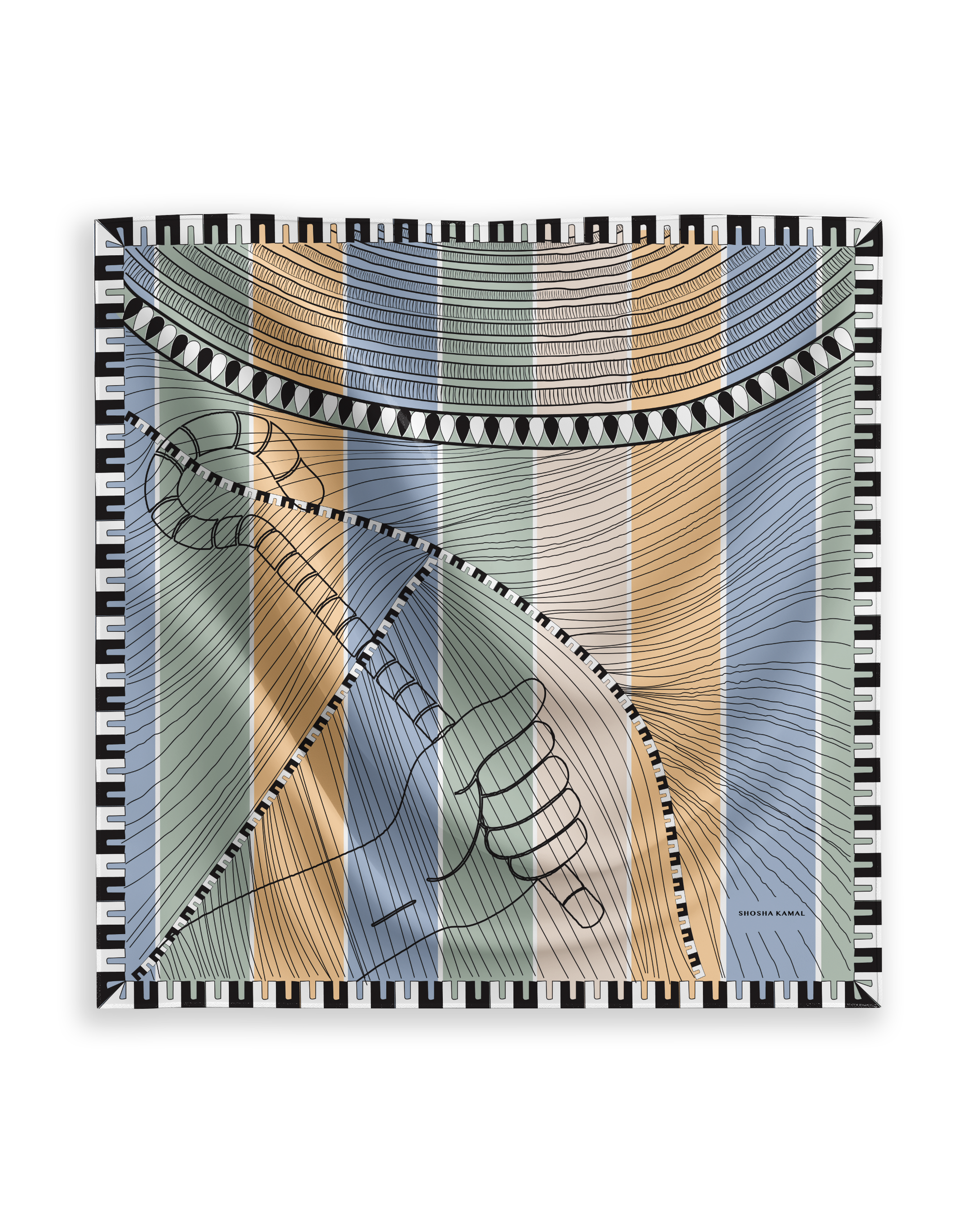 Inspired by the Ramses the Great statue in Turin, this design transforms a three-dimensional masterpiece into a two-dimensional silk canvas. We traced the intricate lines of his garment, the regal necklace, and the mace he firmly holds, preserving the artistry and authority of the original sculpture.